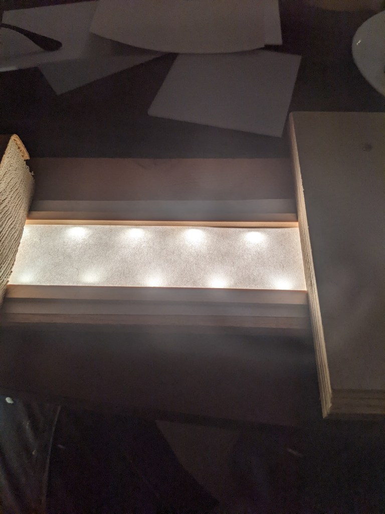 Selecting a diffusion layer for the light took a lot of experimentation. I ended up using a thick paper from a local art store.